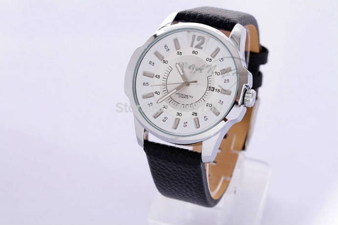 Model Number: 8123 Movement: Quartz Watch Clasp Type: Needle Buckle Clasp Color: Black,Gold Style: Fashion & Casual Gender: Men Dial Display: Analog Case Shape: Round Band Material Type: PU Leather
