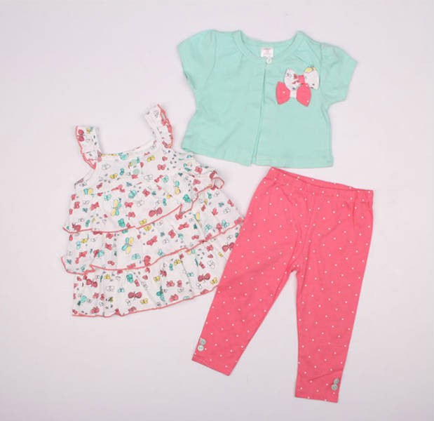 ست سه تکه دخترانه 110519 سایز 12 تا 24 ماه مارک ashleys