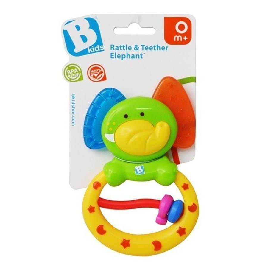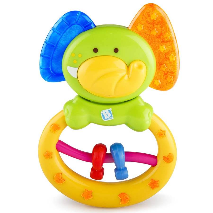 ین جغجغه و دندانگیر به شکل یک فیل بامزه با رنگ های شاد و زیبا ساخته شده است. این جغجغه دارای صدایی است که توجه کودک را جلب می کند و باعث سرگرم شدن کودک می شود. در گوش چپ فیل یک لبه وجود دارد که باعث تسکین خارش و درد لثه های کودک می شود. سر این جغجغه قابل چرخش است و در قسمت پایین آن دو حلقه در حال حرکت وجود دارد. ویژگی این محصول : دارای رنگ های زیبا و شاد مناسب برای سیسمونی کمک به تسکین درد و خارش لثه های کودک ساخته شده از پلاستیک و فاقد مواد شیمیایی مضر free BPA مناسب برای کودکان از بدو تولد برند آمریکایی تولید شده در کشور چین ابعاد محصول : 11*3*19 سانتی متر