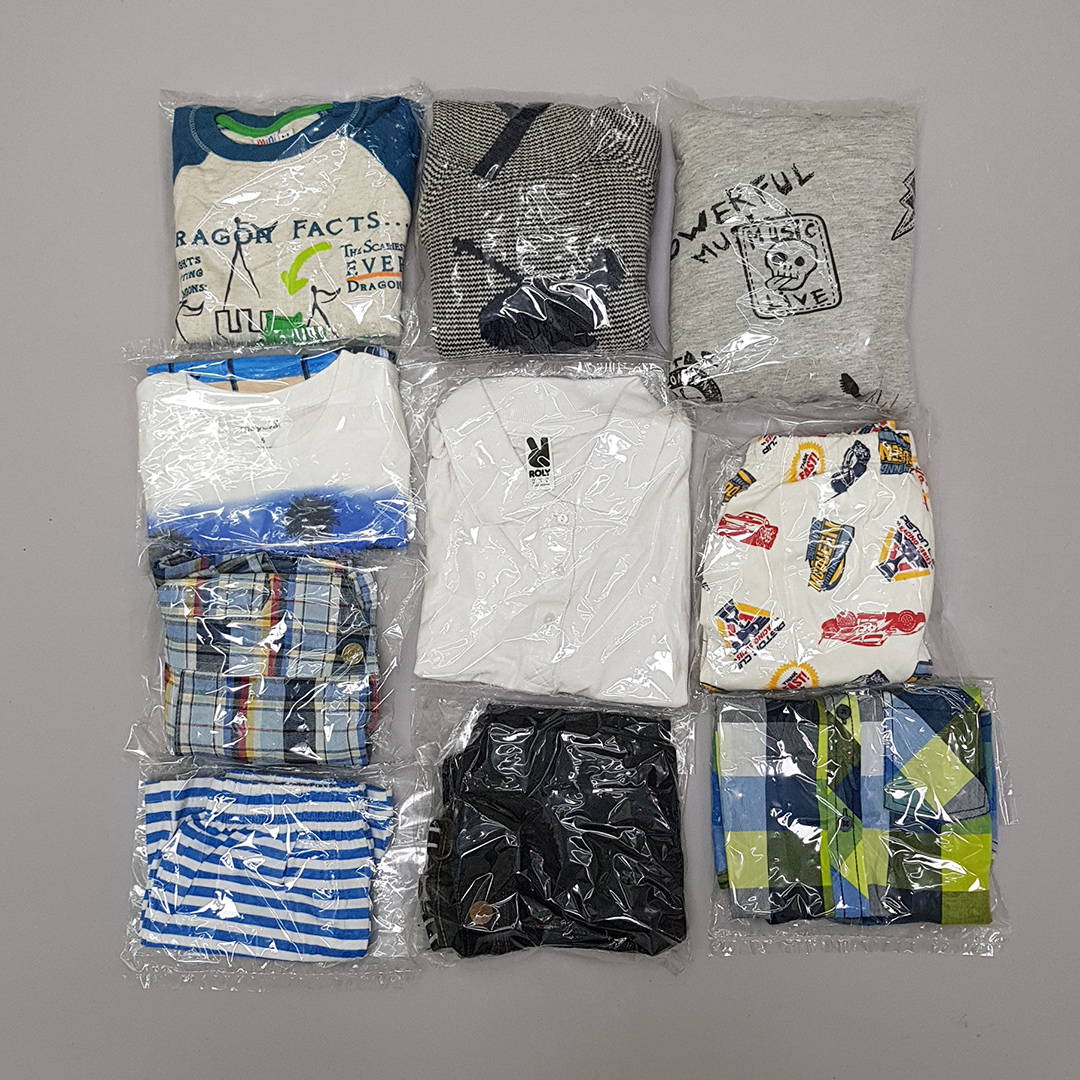 بلوز قرمز 12 ماه- بلوز سفید 3 تا 6 ماه- شلوارک سرمه ای 18 تا 24 ماه- شلوار لاینردار طوسی 18 تا 24 ماه- شلوار جینز سرمه ای 5 سال- بلوز مشکی 10 تا 12 سال- شلوار جینز سرمه ای 13 تا 14 سال- بلوز سفید 3 تا 6 ماه- شلوار کتان 6 تا 9 ماه- شلوارک سرمه ای 6 تا 9 ماه