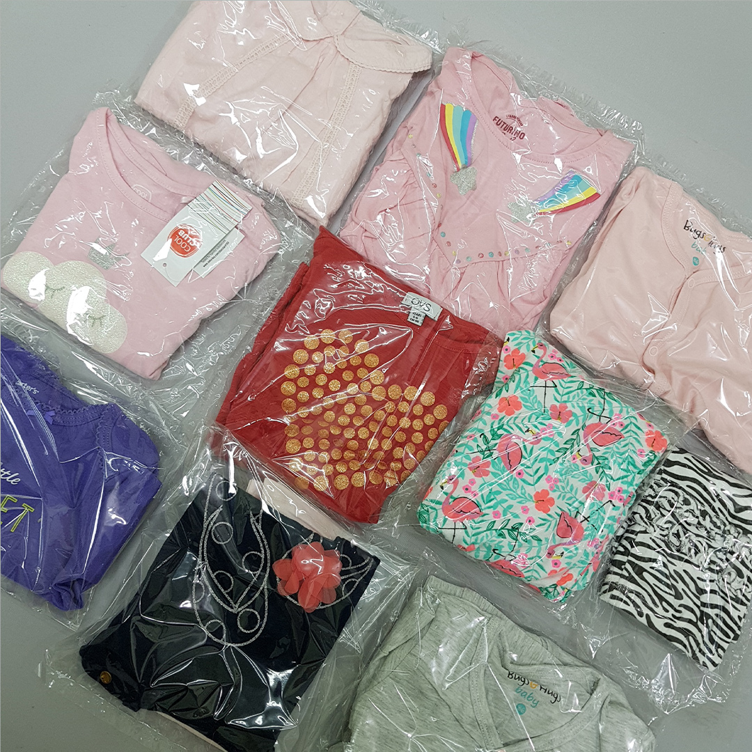 بادی سرخابی 12 ماه- شلوار راحتی صورتی گل گلی 2 تا سال- بلوز گلبهی 1 ماه- سارافون مشکی 1.5 تا2 سال- بلوز سفید 5 سال- شورت سرمه ای xxl – ساپورت سرمه ای 9 تا 10 سال- شلوار راحتی صورتی 36 ماه- شلوار گل گلی 3 تا 6 ماه- بلوز سفید 6 تا 9 ماه