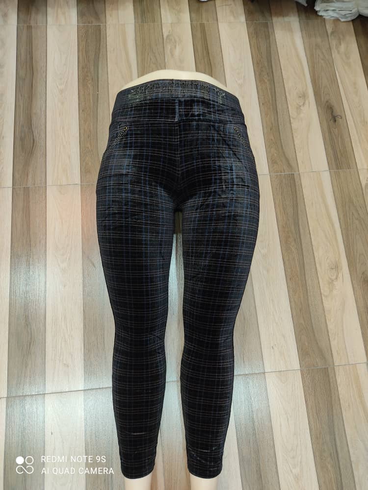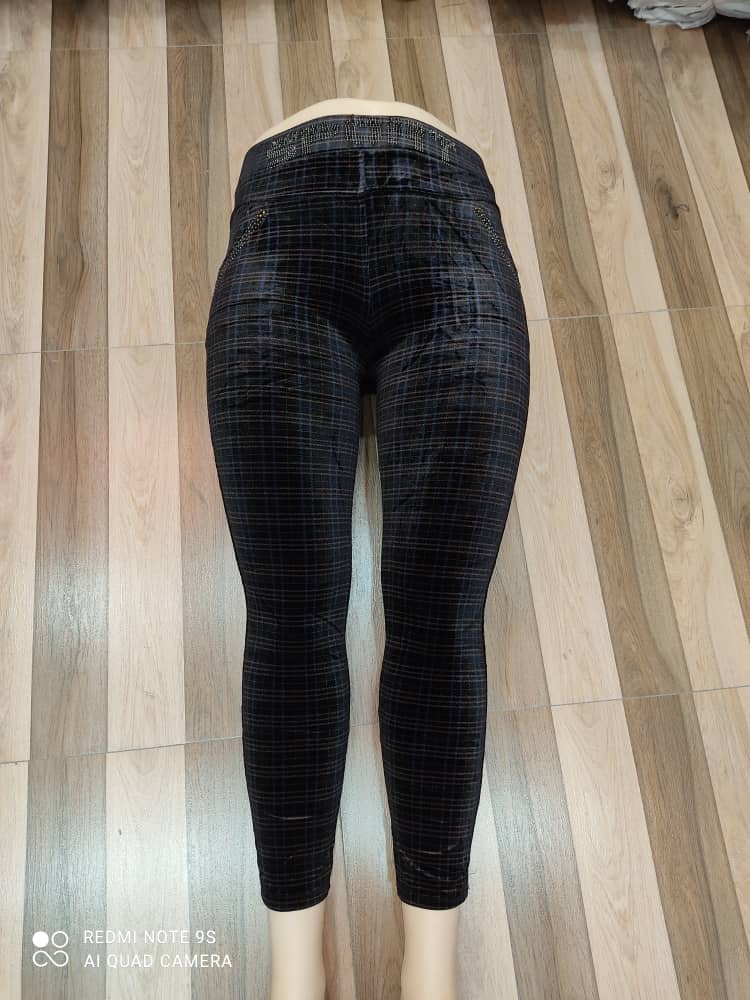 شلوار مخمل طرح چهارخونه قواره بزرگ کش محکم کد 900052
