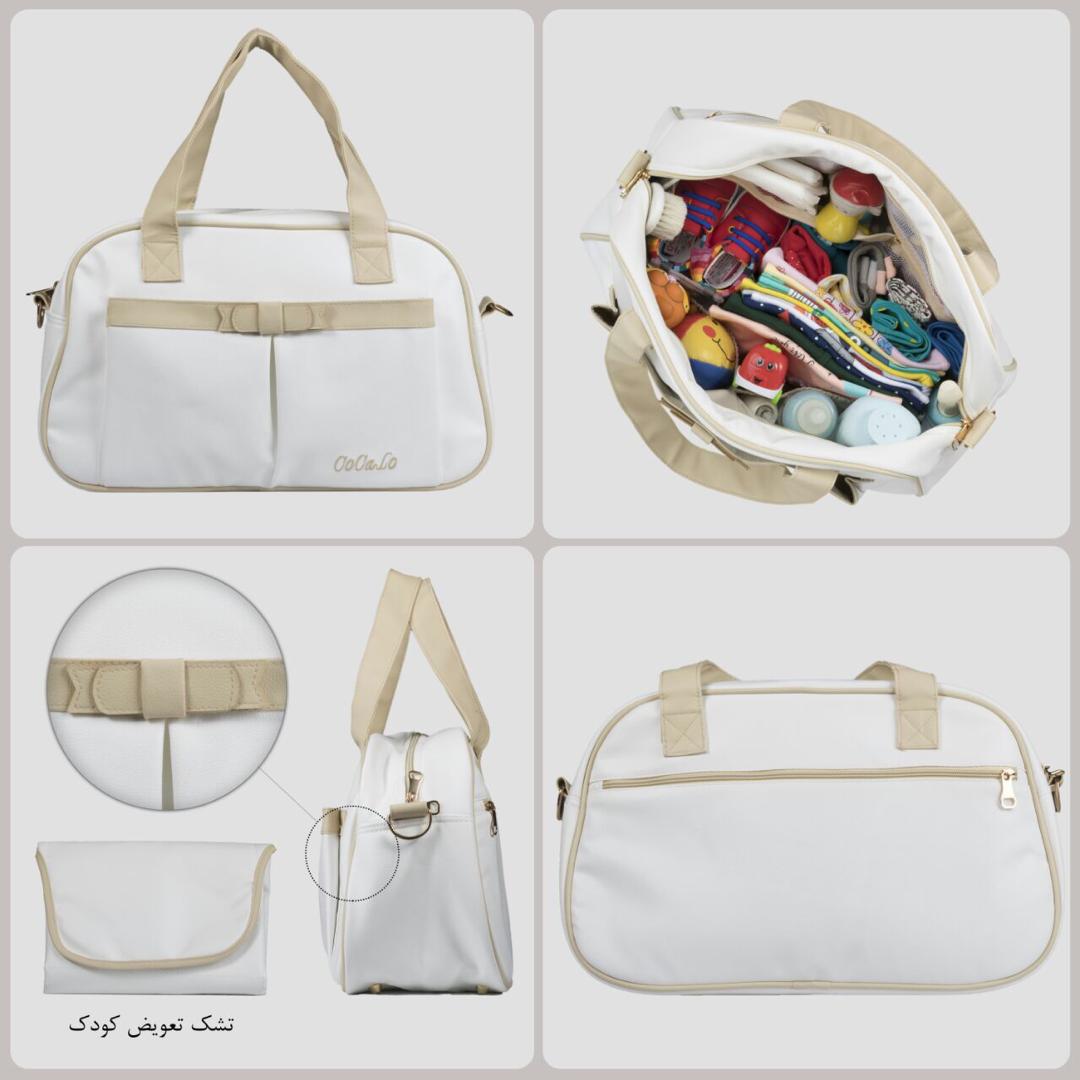 کیف لوازم مادر و کودک طرح چرم پاپیون دار سفید کوکالو cocalo کد 6001927