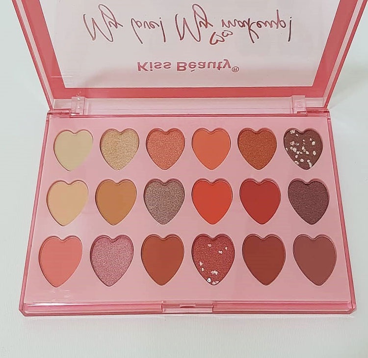پالت سایه رنگی کیس بیوتی دارای رنگهای سرد، خنثی و گرم است و همچنین بعضی از خانههای آن دارای شاین ریز و درخشان هستند و بعضی دیگر از خانهها سایههای مات دارند. بافت بسیار مخملی و نرمی دارد و به راحتی بر پشت پلک محو شده و این سایه ماندگاری بالایی دارد.