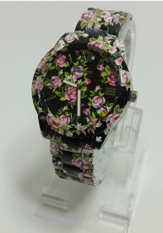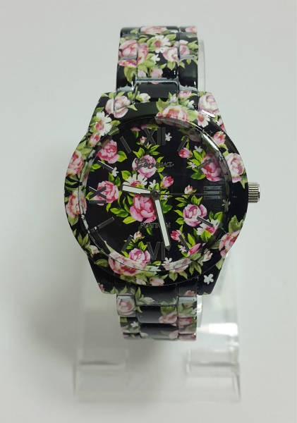 ساعت فلورال 70102 مارک Geneva رنگ مشکی با گل صورتی