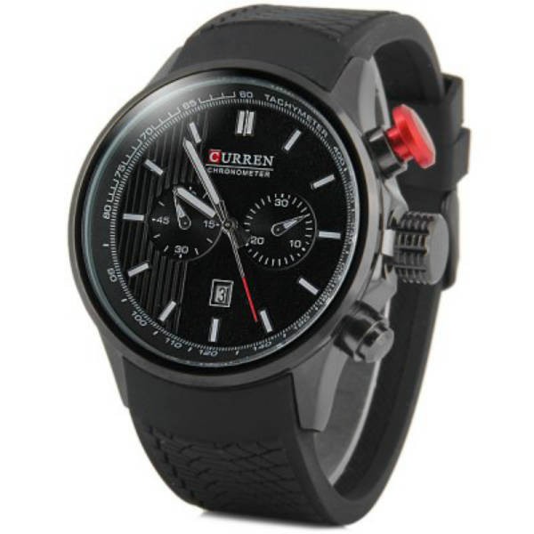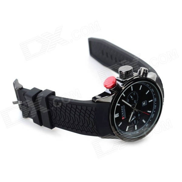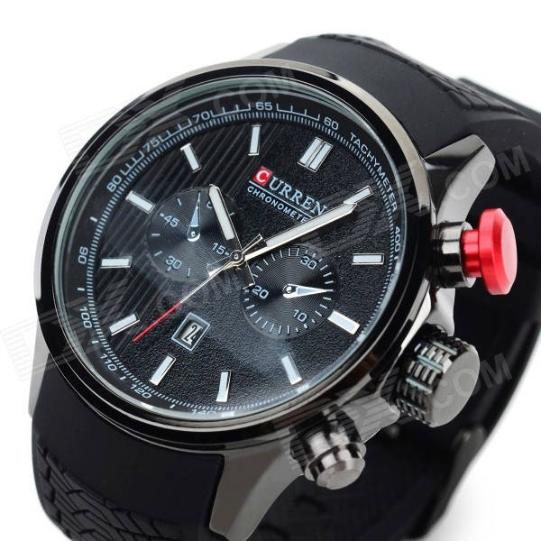 Quartz movement guarantees precise and punctual timing Round watch dial is simple and generous With date function Two non-functioning sub-dials Normal water resistant, not for showering or swimming Rubber band is smooth to wear and sturdy in structure Help you to always be on time Good time-reminder and ornament
