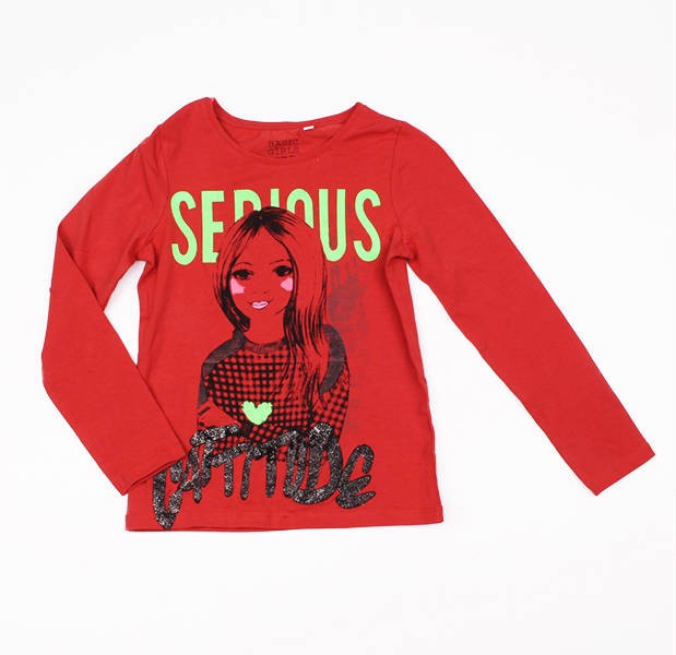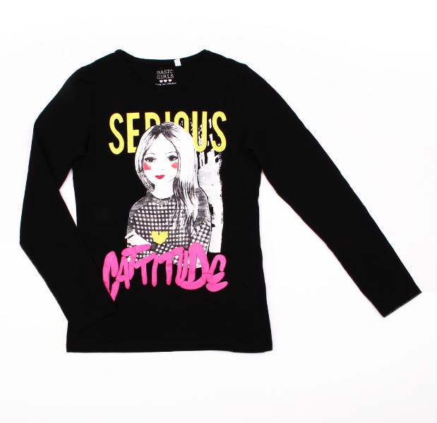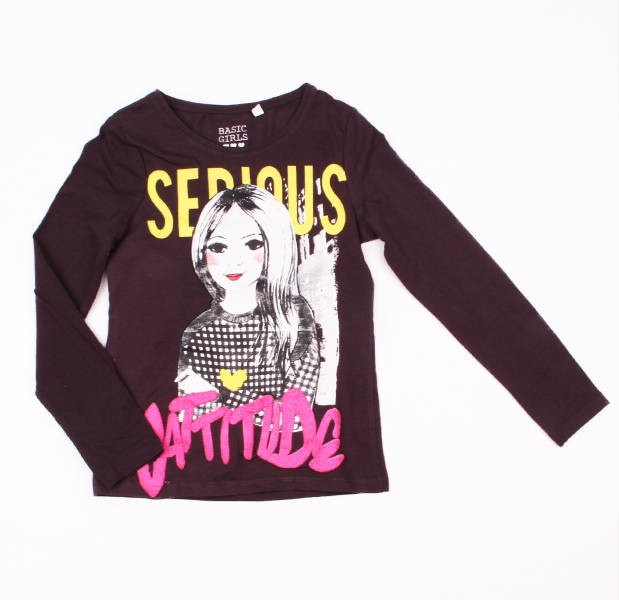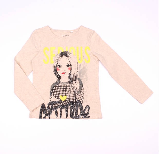 تی شرت آستین بلند دخترانه 11033 سایز 7 تا 16 سال مارک basic girls
