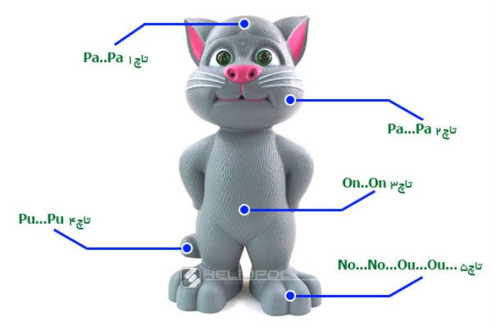 حالا عروسک این گربه وارد بازار شده است و امکانات جدید دارد و هم صدای شما را تقلید میکند هم دست و پای گربه را دست بزنیم سرو صدا میکنه و اگر دست به پشت گربه یا سرو چشمهای گربه بزنید سرو صداهای جالبی از خود در میآورد.
