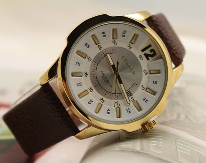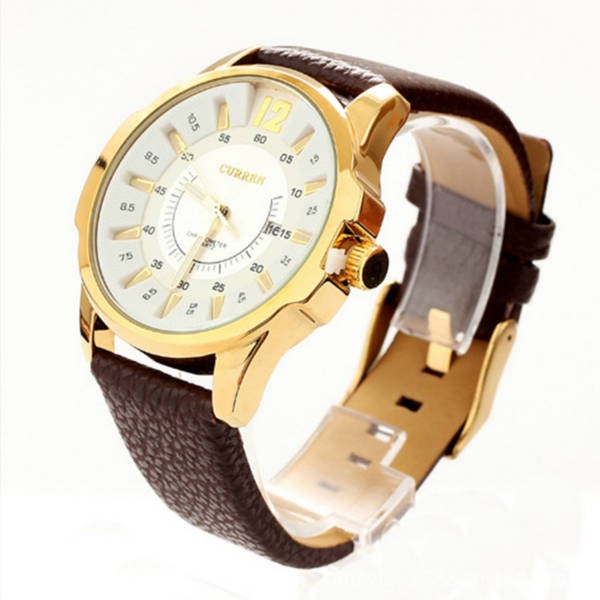 Model Number: 8123 Movement: Quartz Watch Clasp Type: Needle Buckle Clasp Color: Black,Gold Style: Fashion & Casual Gender: Men Dial Display: Analog Case Shape: Round Band Material Type: PU Leather