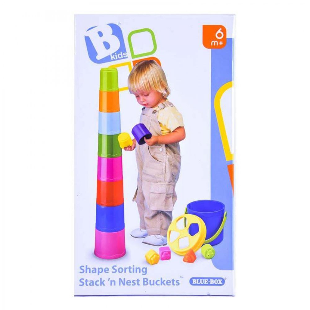 اسباب بازی شامل : 10 فنجان, یک سطل با یک درب سوراخ دار, یک مثلث, یک مربع, یک دایره و یک پنتاگون است