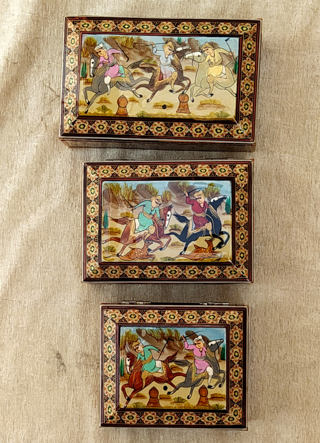 جعبه سری سه تایی معمولی لولادار نقاشی شکار کد 220063