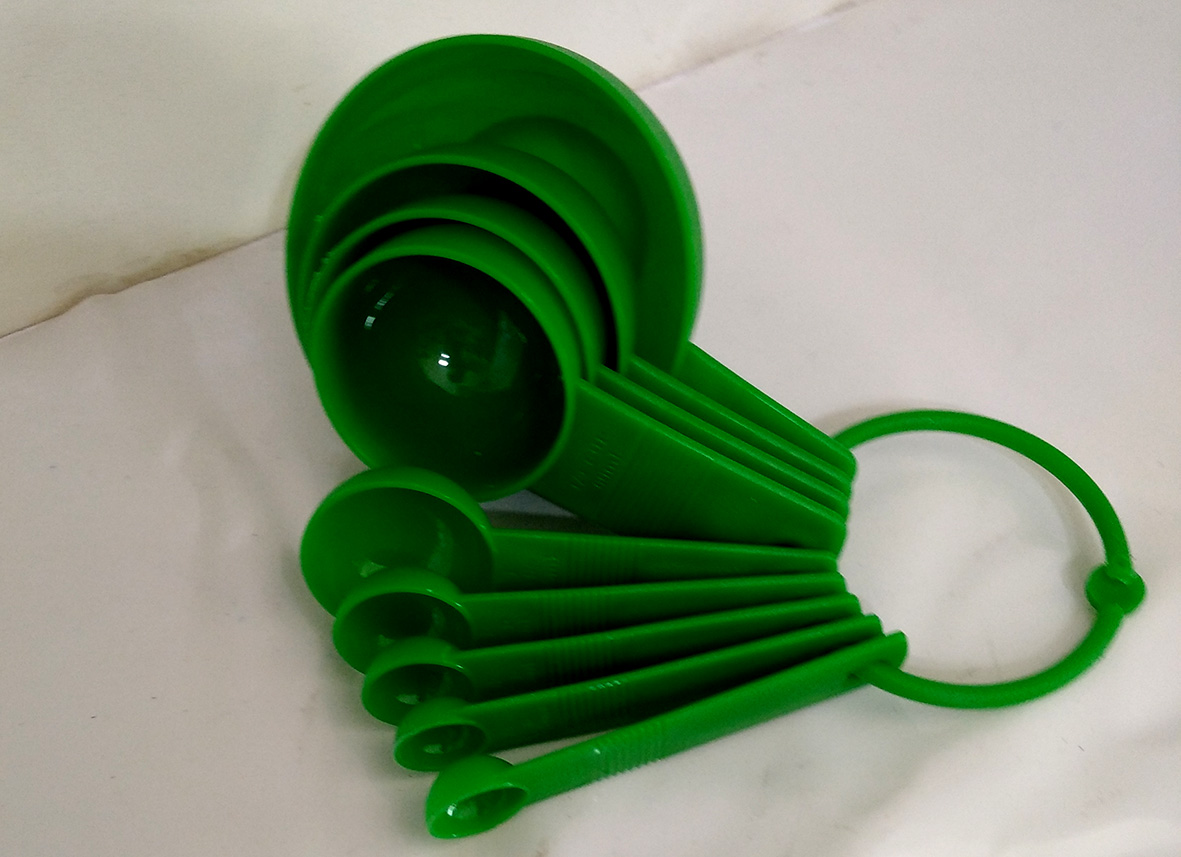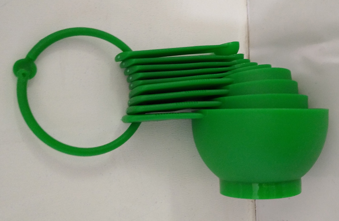 پیمانه ۹ تیکه پلاستیکی در ۹ سایز متفاوت .مورد استفاده در آشپزخانه ها برای اندازه گیری انواع لوازم آشپزی برای کیک مانند آرد ،شکر،روغن و که با استفاده از اینها به راحتی میتوانید اندازه مناسب هر مقدار لازم از مواد مورد نیاز برای آشپپزی و کیک پزی را بدانید.بزرگترین پیمانه مقدار۲۴۰گرم و کوچک ترین پیمانه مقدار۱٫۲گرم را در خود جای میدهد