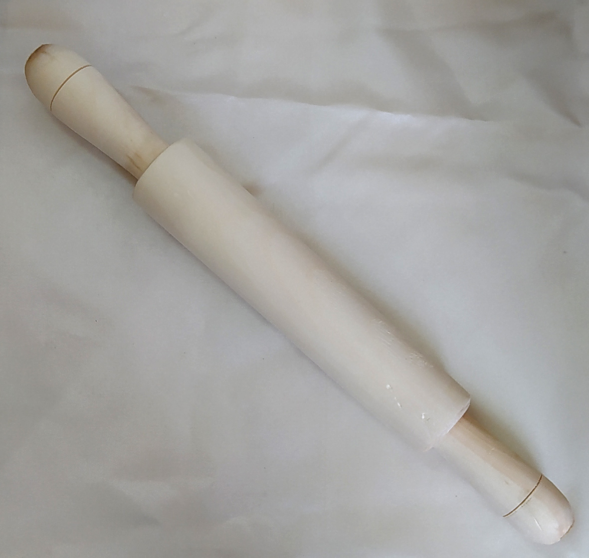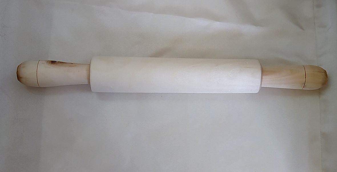 این وردنه از جنس چوب میاشد و طول 40 سانتی متر و قطر تقریبا 6 سانتی متر