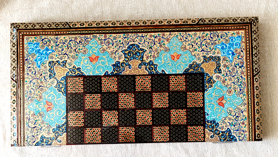 تخته نرد و صفحه شطرنج خاتم کاری اعلا کاری بسیار زیبا هنر دست هنر مندان اصفهانی