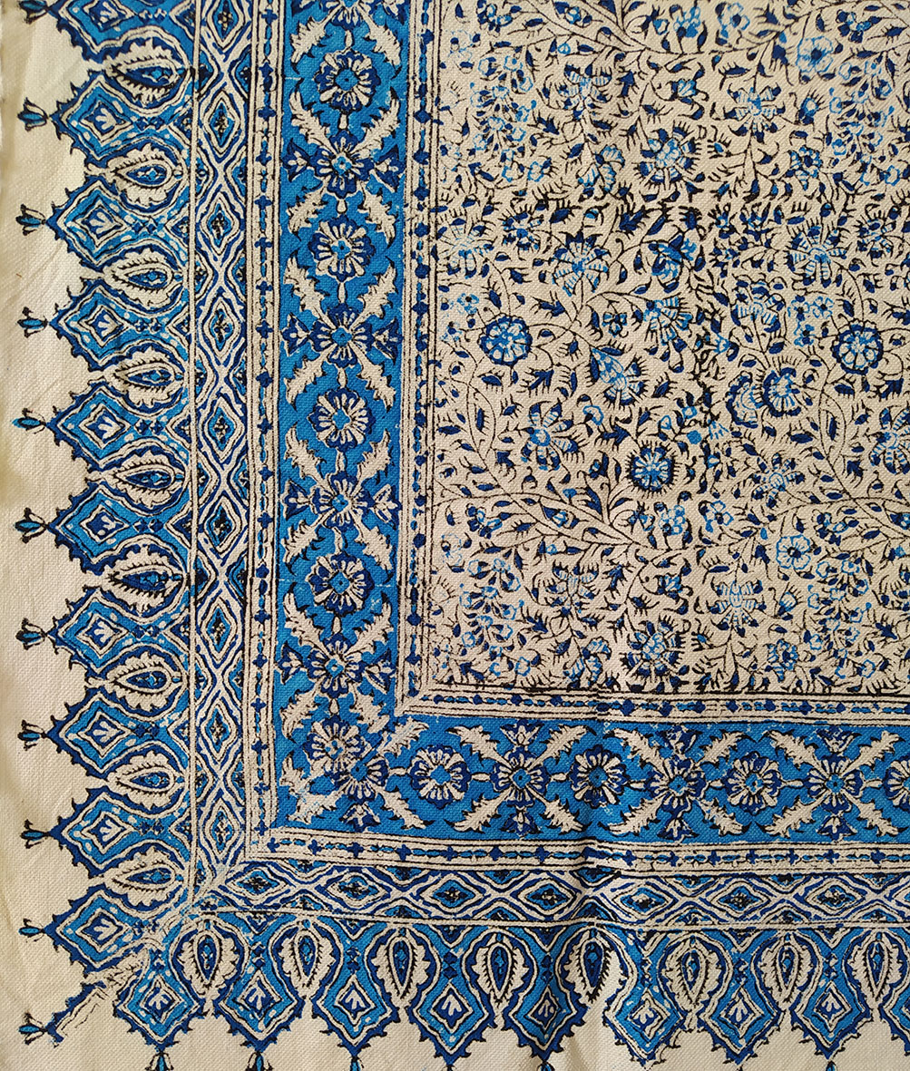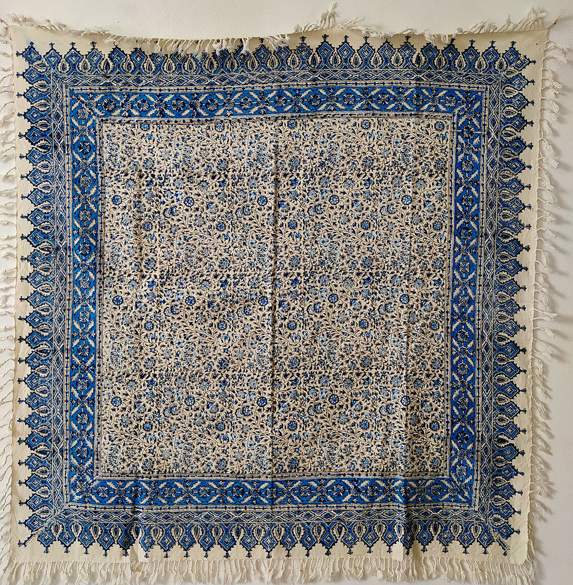 سفره قلمکار ۱۰۰*۱۰۰ سفید آبی