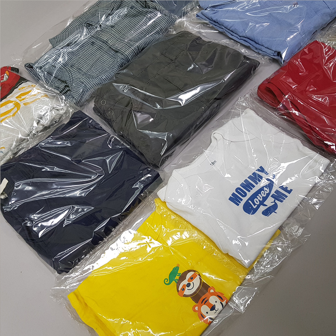 تی شرت سفید مدیوم- پیراهن سفید 2 تا 3 سال- رامپر کاربنی 12 تا 18 ماه- بلوز قهوه ای 5 تا 6 سال- شلوار جینز 18 ماه- شلوار راحتی خاکستری 14 – شلوارک جینز آبی XL – رامپر جینز سرمه ای 18 تا 24 ماه- شلوار راحتی خاکستری 4 سال- بلوز راه راه 9 تا 10 سال