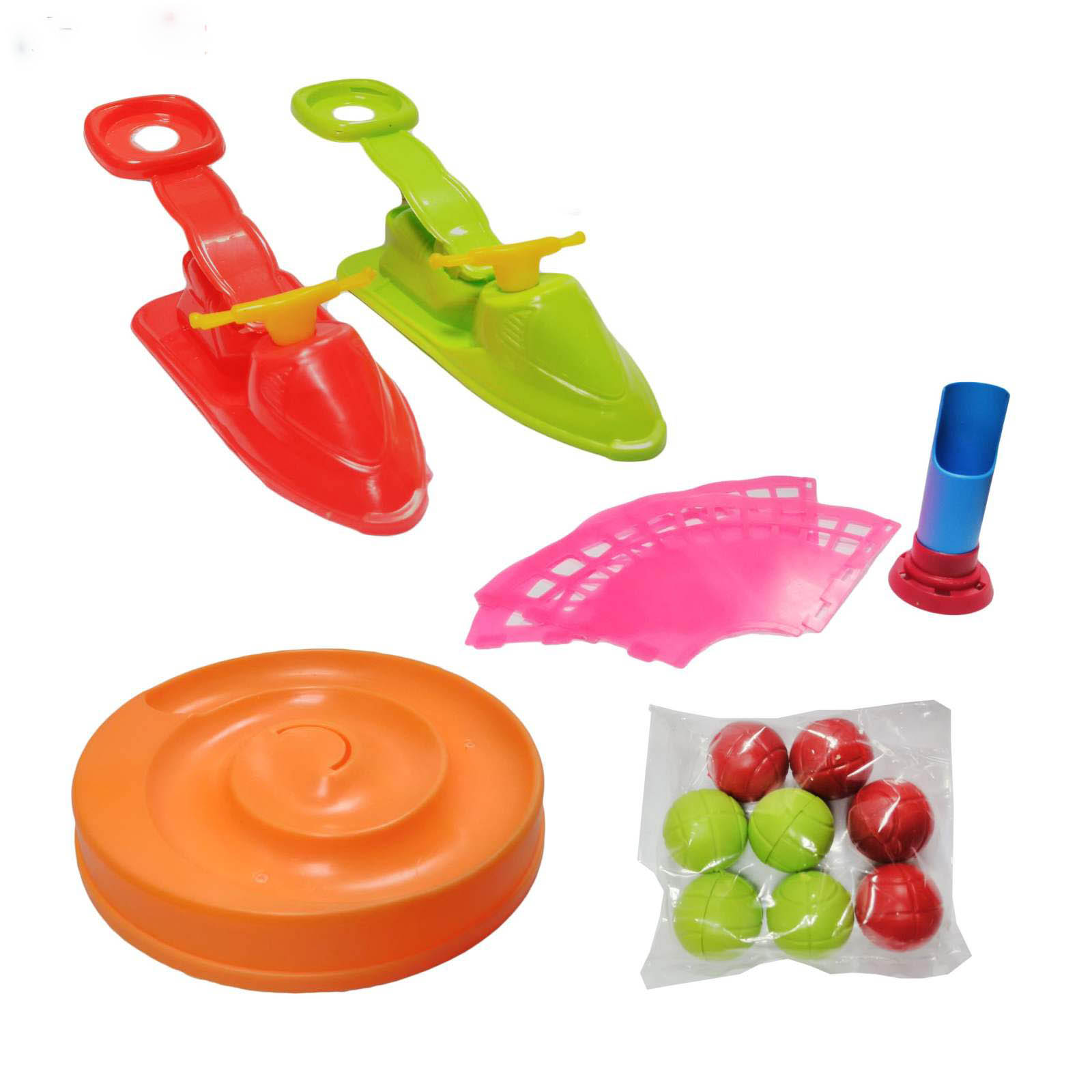 محتویات بسته:8 عدد توپ ، دوعدد پرتاب کن، یک عدد سبد توپ (نیاز به سرهم بندی)،یک عدد مارپیج توپ