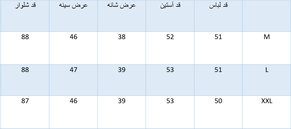 به جدول سایزبندی در عکسهای پایین صفحه توجه کنید.