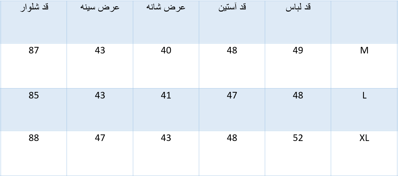 به جدول سایزبندی در عکسهای پایین صفحه توجه کنید.