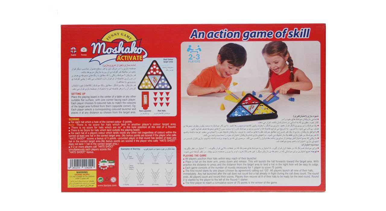 محتویات :صفحه اصلی بازی،3عدد پرتابگر در 3رنگ،27عدد تیر موشکی شکل