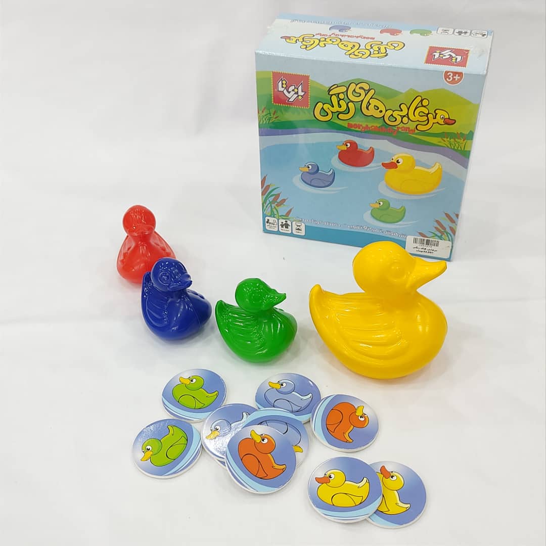 یک عدد مرغابی مادر 3 عدد جوجه مرغابی 20 عدد کارت های بازی قانون بازی