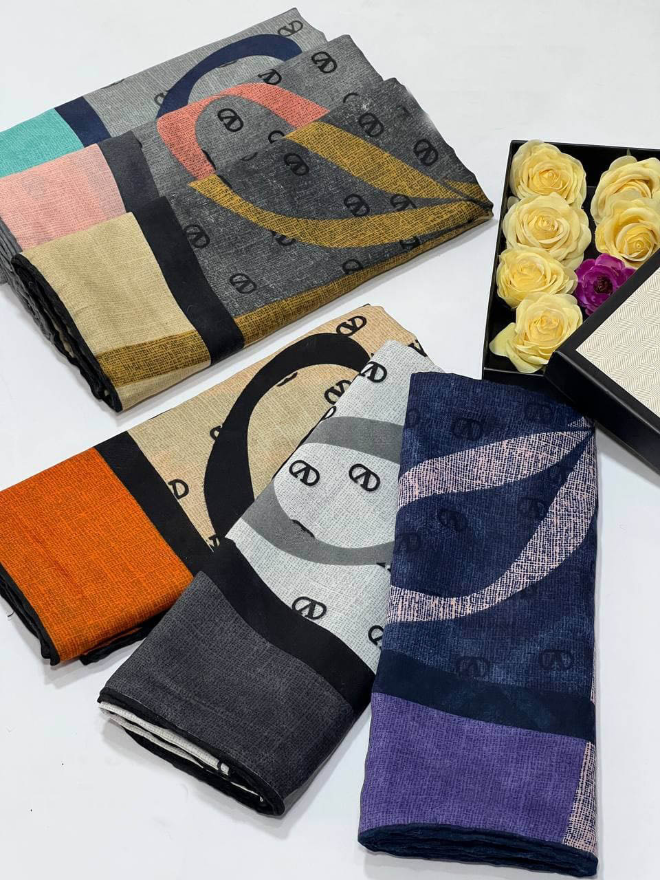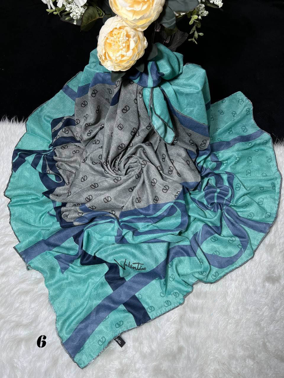 روسری نخ ژاکارد اورجینال دور دست دوز