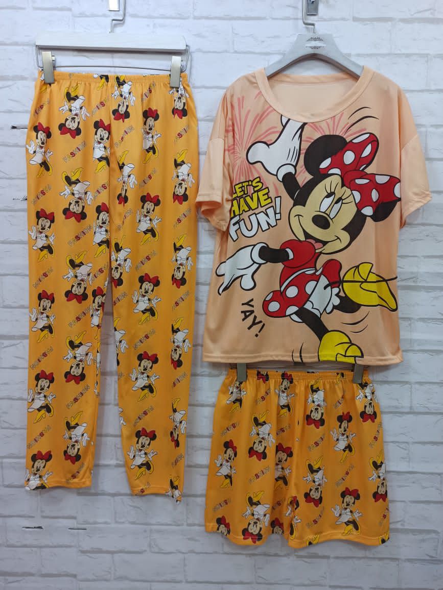 ست 3 تکه تی شرت و شلوار و شورتک زنانه