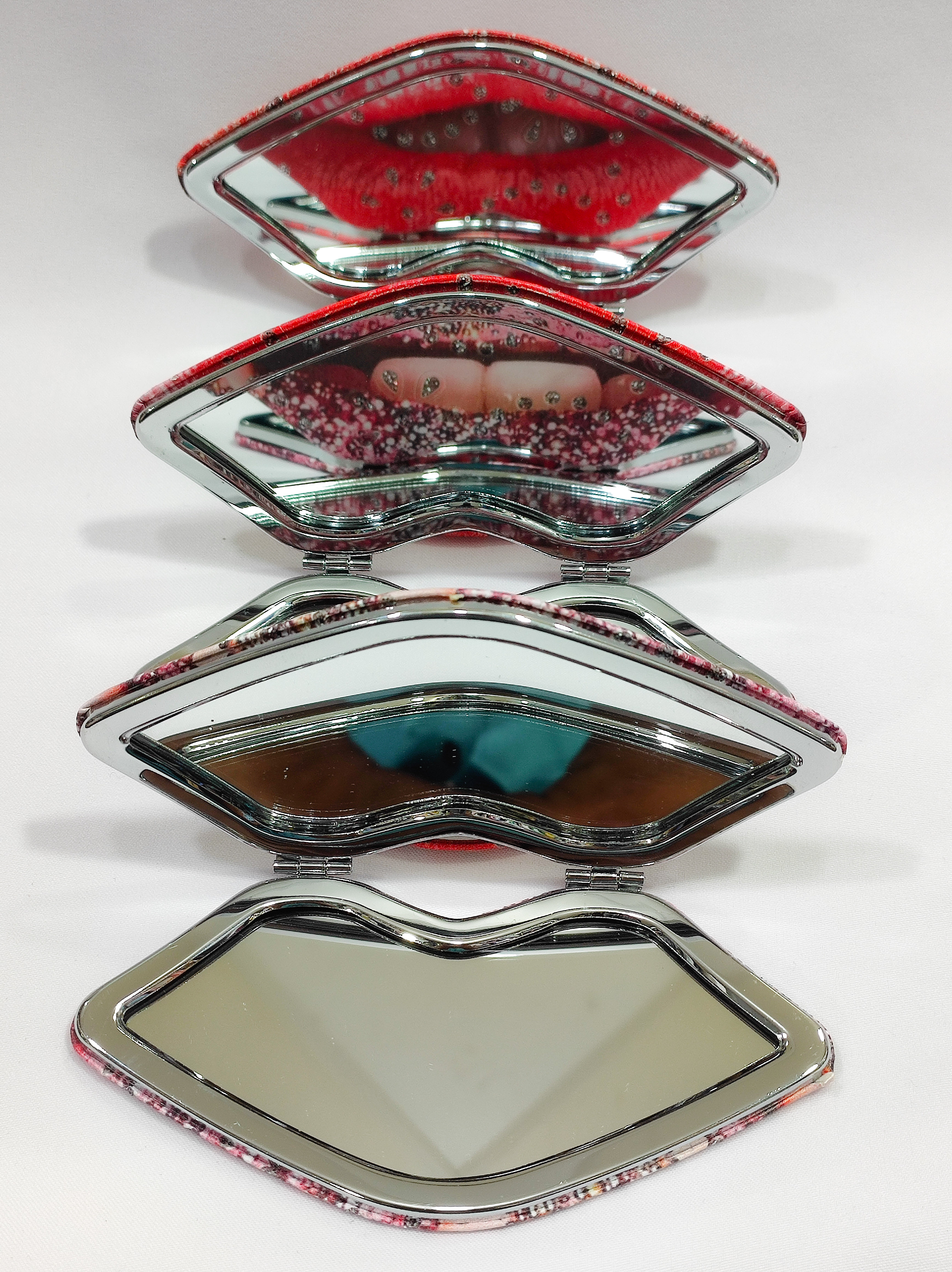 آینه دو طرفه جیبی دخترانه فانتزی طرح رژلبی کد 75509