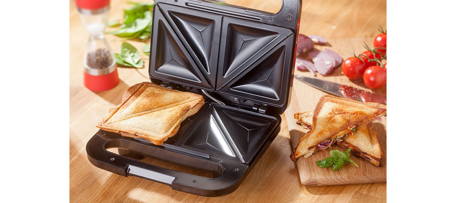 دارای 2 صفحهی مخصوص برای طبخ 8 عدد ساندویچ مثلثیشکل و 2 صفحه مخصوص جهت گریلکردن موادغذایی مانند گوشت همبرگر، فیله مرغ و استیک است که پس از استفاده از هر کدام کاربر میتواند بهراحتی صفحات را از دستگاه جدا کرده و با آب بشوید. جنس صفحات این ساندیچساز از نوع تفلون نچسب است که موادغذایی بهراحتی از آن جدا میشود؛ البته پیشنهاد میشود قبل از هربار استفاده با مقدار کمی روغن یا کره صفحات چرب شود. باید یادآور شد که دو قسمت بالا و پایین این دستگاه زمانی که هنوز مواد را در بین آن قرار ندادهاید، مقداری خلاصی دارد که طبیعی است؛ دلیل این امر این است که حجم موادغذایی و ساندویچی که بین صفحات ساندیچساز قرار میگیرد، خلاصی بین فضای صفحات را پر میکند.