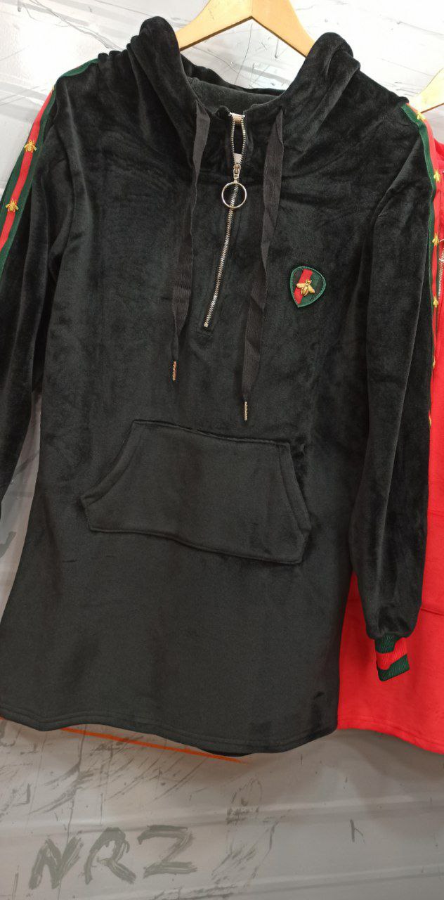هودی مخمل کلاهدار بلند زنانه